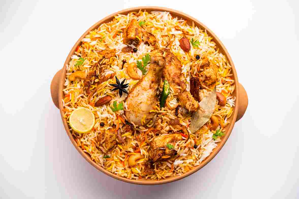 Chicken cooked with basmati rice, flavored with saffron & Oriental spices, garnished with coriander